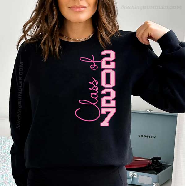 Class of 2027 Embroidery Machine Designs Senior Graduate 9 sizes 4X4 5X7 6X10 7X12 Graduation place it on shirts, pants, sweatpants leggings