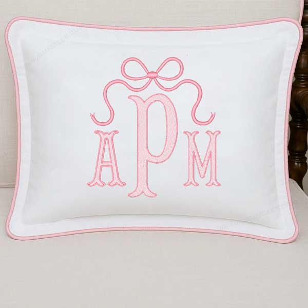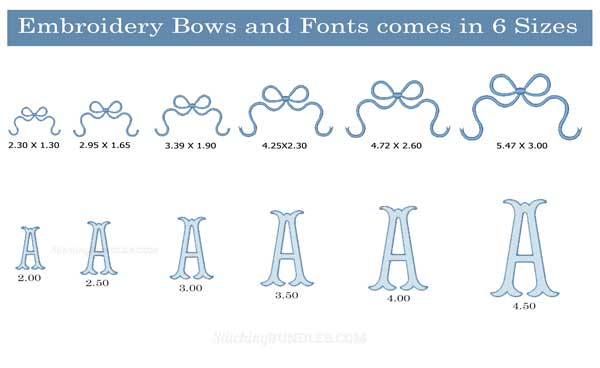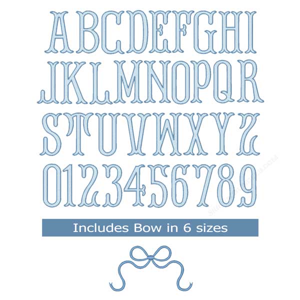 Fishtail with Bow Monogram 2 Color Embroidery Font filled stitch with a satin outline 6 sizes Bows 6 Sizes with satin stitch bx format