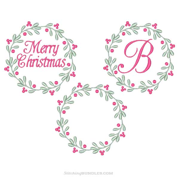 Holly Wreath Frame Embroidery Designs. Perfect for monogramming towels, pillows, family shirts, and table runners.